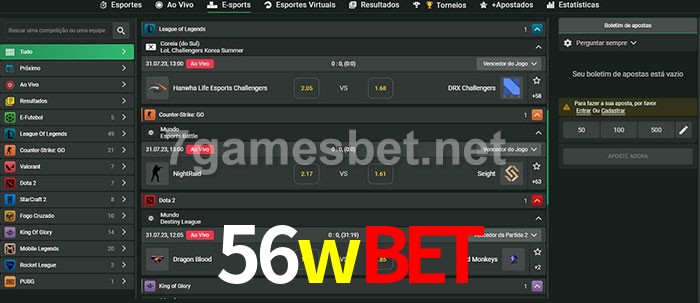 A aposta 56wbet oferece aos jogadores a experiência mais conveniente de apostas em eSports!